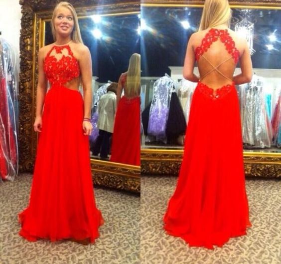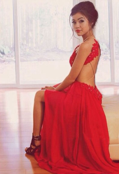 Long prom dress, sexy prom dress, lace prom dress, open back prom dress, red prom dress, chiffon prom dress.