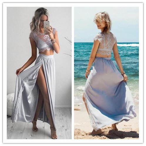 Popular prom dress, long prom dress, cheap prom dress, lace prom dress, cap sleeve prom dress, sexy prom dress, summer dress, two piece dress.