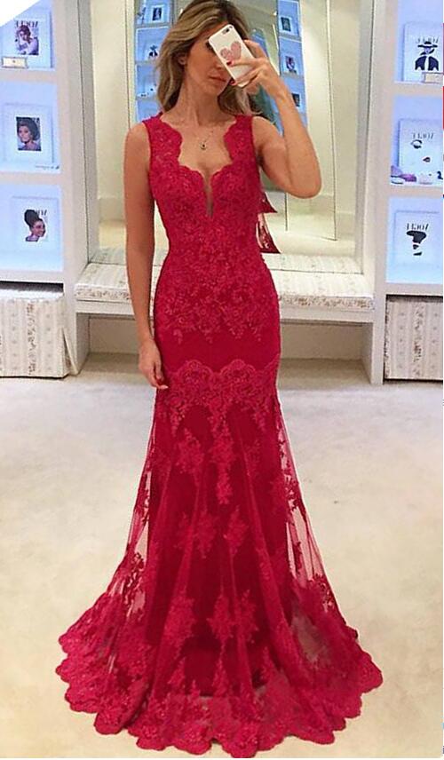 Red prom dress, long prom dress, lace prom dress, elegant prom dress, unique prom dress, modest prom dress, evening dress, PD15212