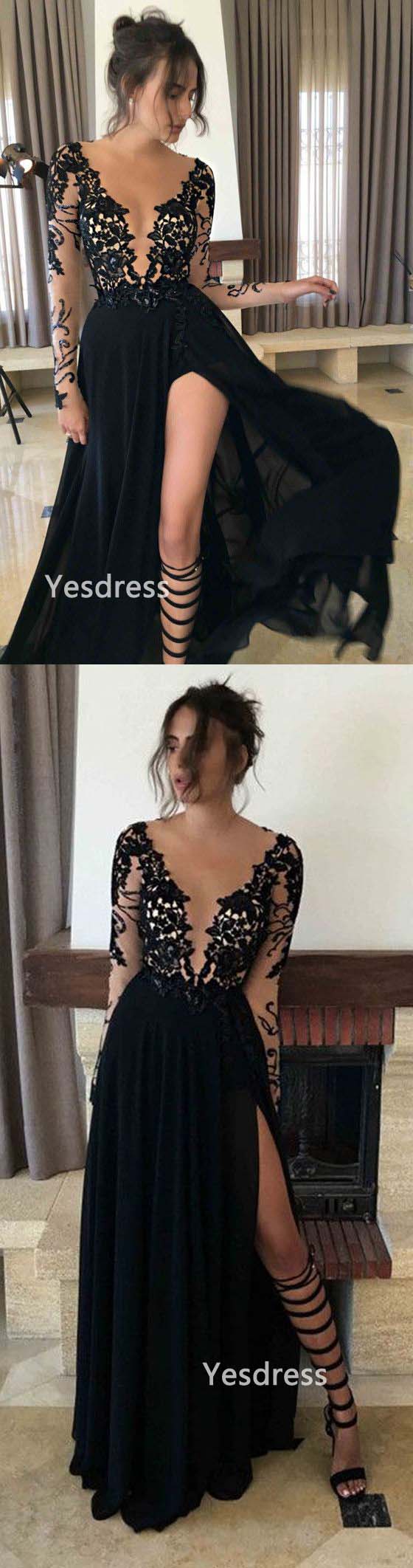 long prom dress, black prom dress, long sleeves prom dress, deep v neck prom dress, sexy prom dress, evening dress, PD15217