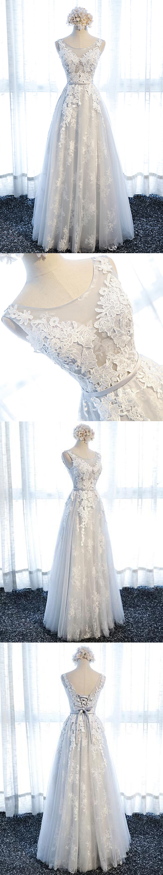Long prom dress, grey prom dress, lace up back prom dress, cheap prom dress, formal prom dress, a line prom dress, evening dress, PD15261