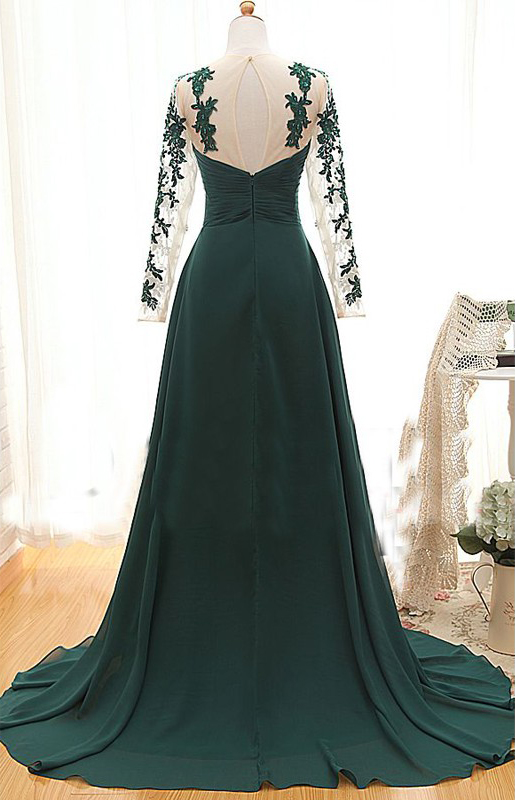 Long prom dress, green prom dress, elegant prom dress, long sleeve prom dress, unique prom dress, inexpensive prom dress, PD15290
