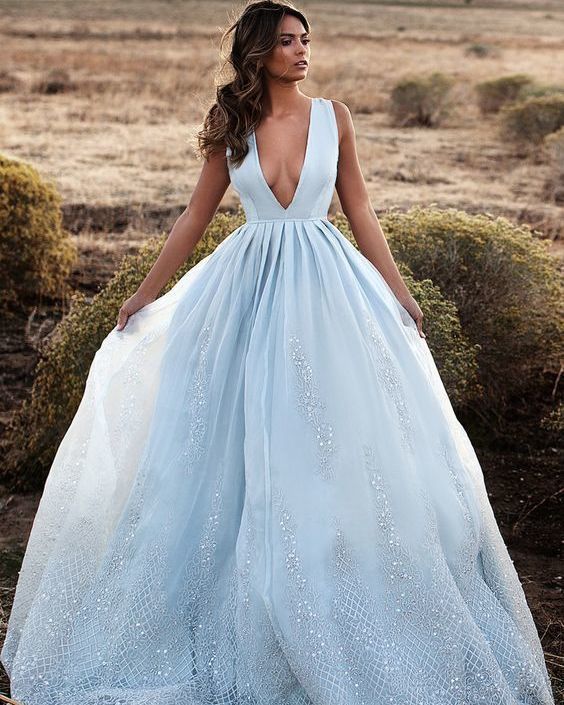 Long prom dress, blue prom dress, v neck prom dress, sexy prom dress, formal prom dress, evening party dress, PD15418