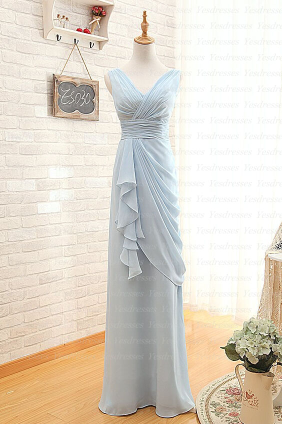 Chiffon bridesmaid dress, long bridesmaid dress, on sale bridesmaid dress, cheap bridesmaid dress, blue bridesmaid dress, unique bridesmaid dress.