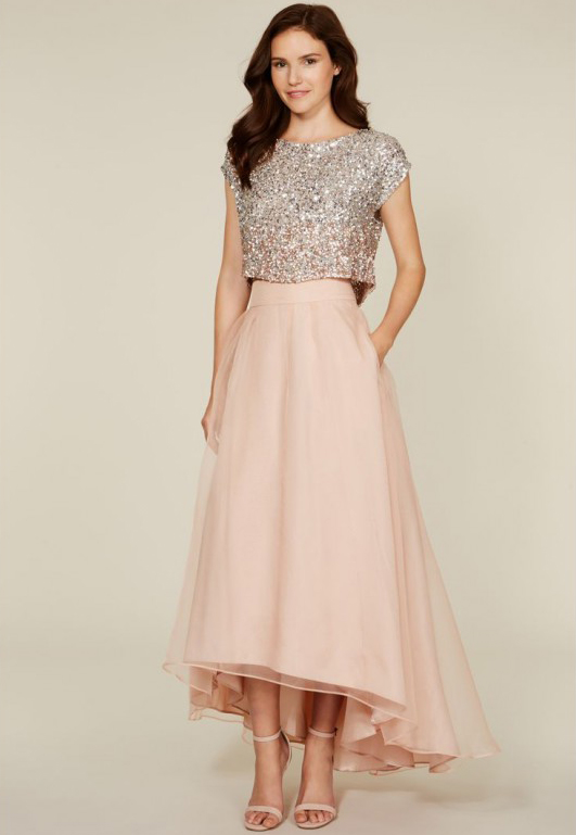 Two pieces bridesmaid dress, high low bridesmaid dress, cap sleeves bridesmaid dress, sequin top bridesmaid dress, wedding party dress, PD15320