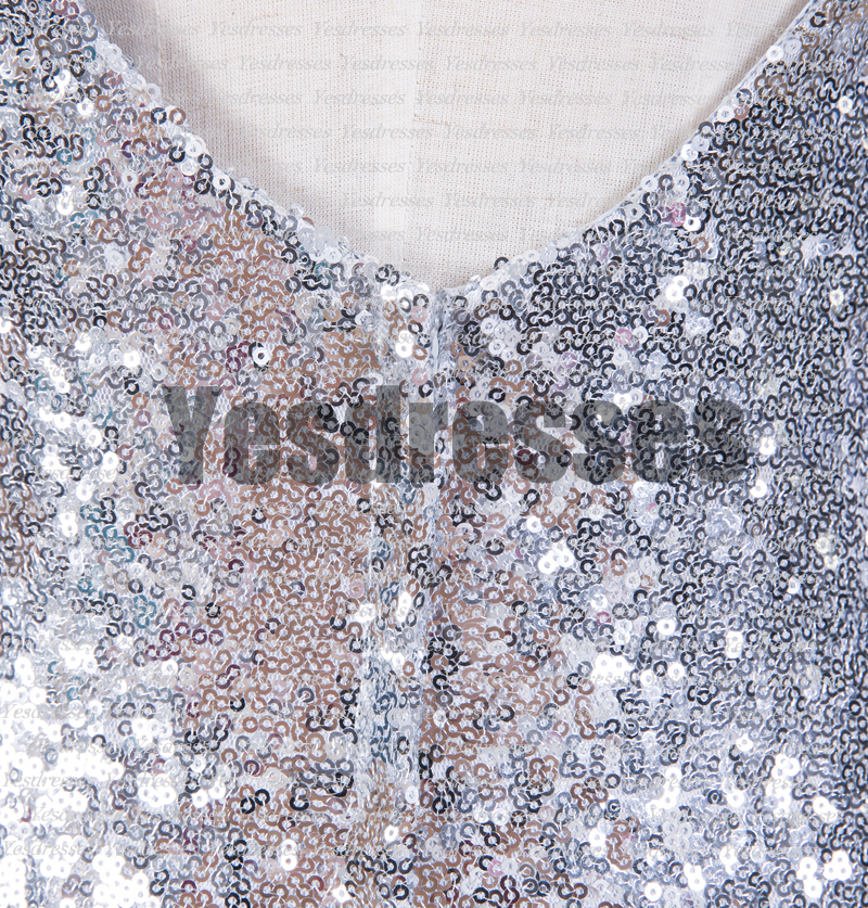 Sequin bridesmaid dress, cap sleeve bridesmaid dress, long bridesmaid dress, gorgeous bridesmaid dress, silver popular bridesmaid dress, PD15359