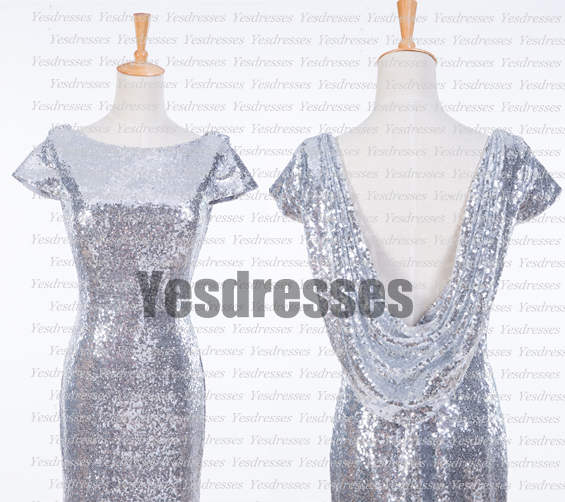 Sequin bridesmaid dress, cap sleeve bridesmaid dress, long bridesmaid dress, gorgeous bridesmaid dress, silver popular bridesmaid dress.