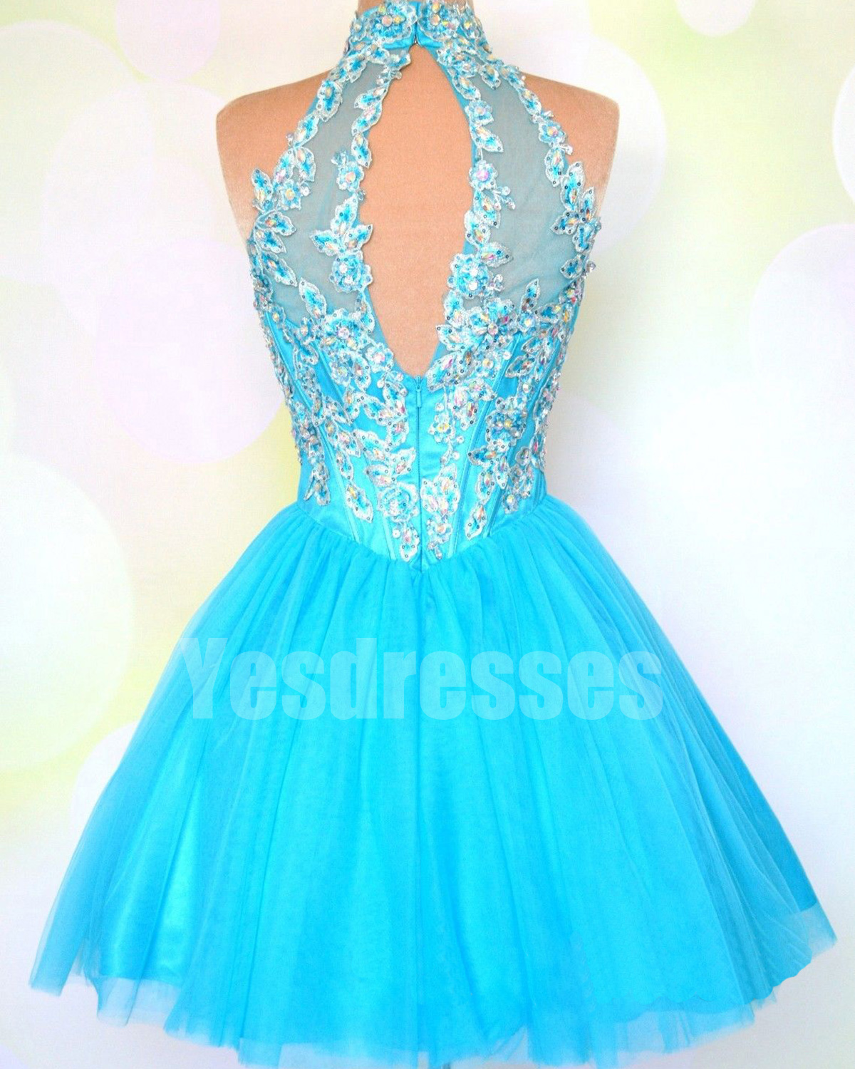 short prom dress, blue prom dress, lace prom dress, junior prom dress, discount prom dress, pretty prom dress, short homecoming dress, PD15144