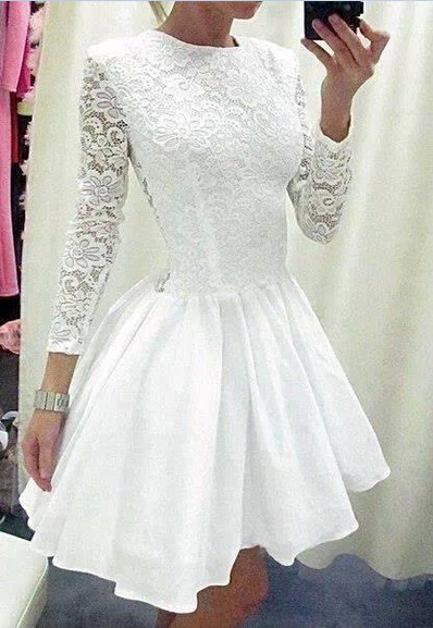 short homecoming dress, white lace prom dress, cheap long sleeve prom dress, party dress, formal homecoming dress, handmade homecoming dress, PD15165