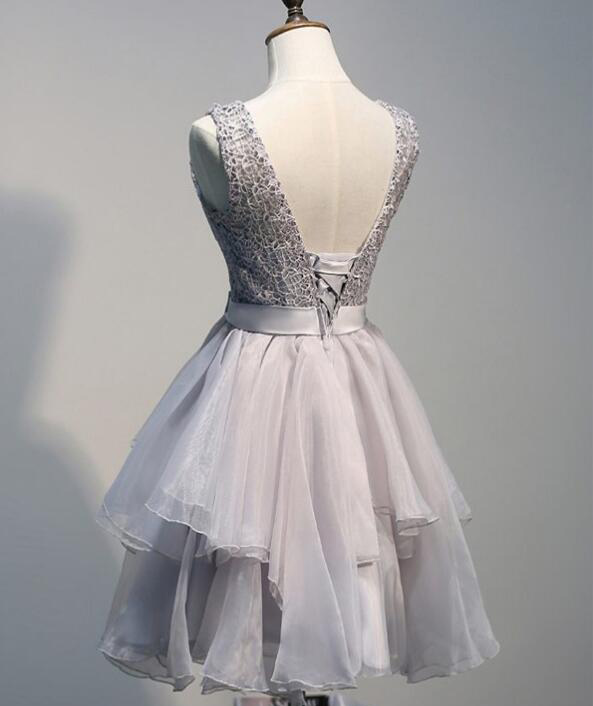 short homecoming dress, silver grey prom dress, cheap prom dress, party dress, junior homecoming dress, graduation dress, lace up prom dress, occasion dress, PD15189