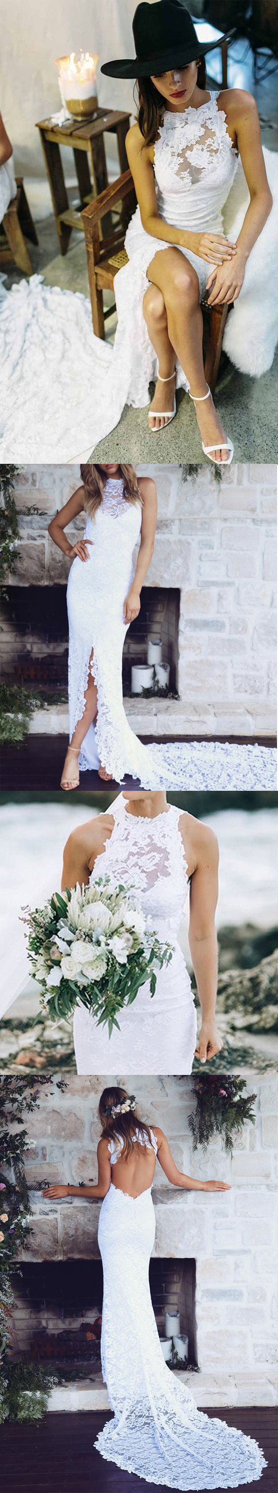 Lace wedding dress, long wedding dress, mermaid wedding dress, split wedding dress, open back wedding dress, bridal dress, PD15371