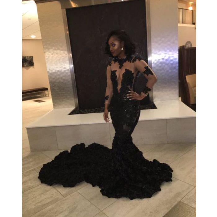 long prom dress, seen through deep v neck prom dress, long sleeves prom dress, sexy black prom dress, evening dress, PD15384