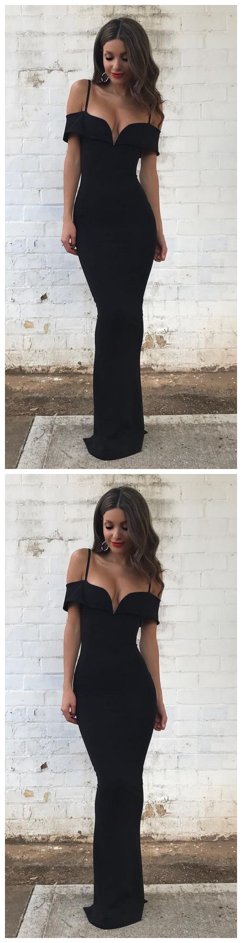 Long prom dresses, black prom dress, sexy prom dress, mermaid prom dress, off the shoulder prom dress, party dress, PD15434
