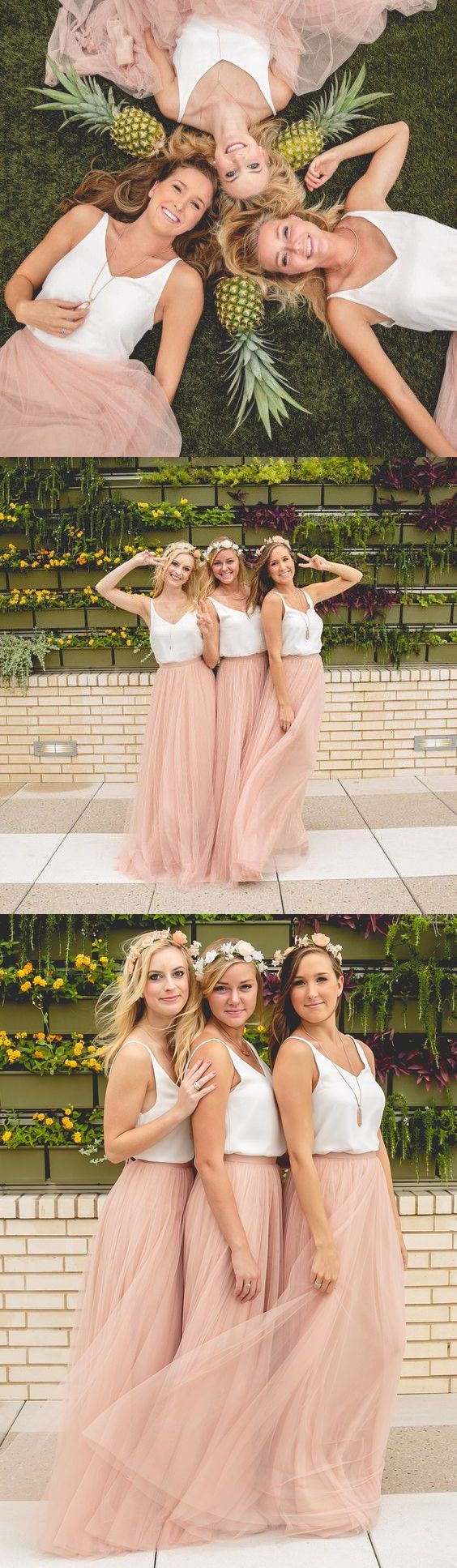 Long bridesmaid dress, tulle bridesmaid dress, formal bridesmaid dress, cheap bridesmaid dress, wedding party dress, PD15462