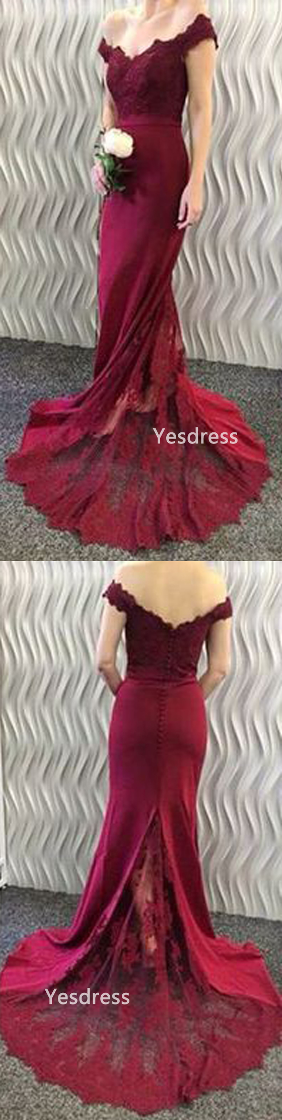 Burgundy bridesmaid dress, off the shoulder bridesmaid dress, mermaid bridesmaid dress, long bridesmaid dress, lace bridesmaid dress, PD15496